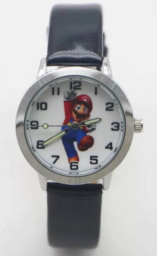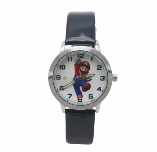 Leuk kinderhorloge met Mario afbeelding en leer bandje in diverse kleuren. Een leuk horloge om cadeau te geven voor bijvoorbeeld een verjaardag, het behalen van een zwemdiploma, voor een feestdag of natuurlijk zomaar.