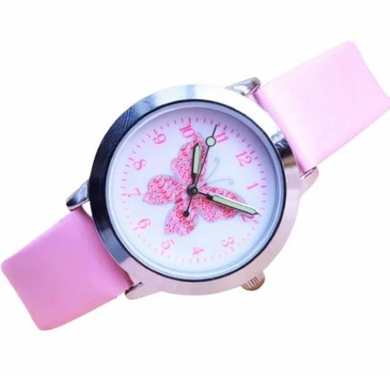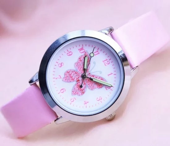 Leuk meisjeshorloge met vlinderafbeelding, leuk om cadeau te geven voor een verjaardag of andere gelegenheid.