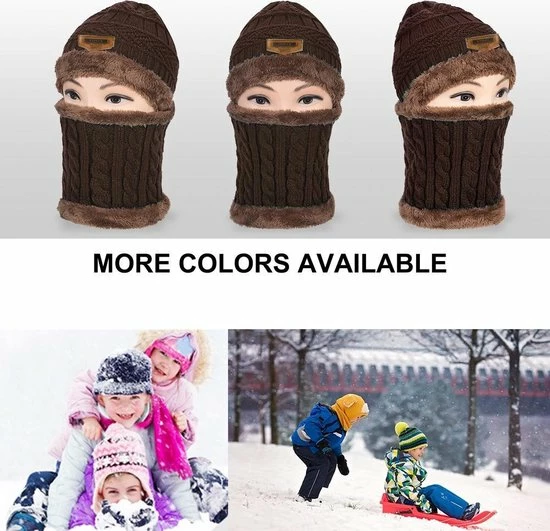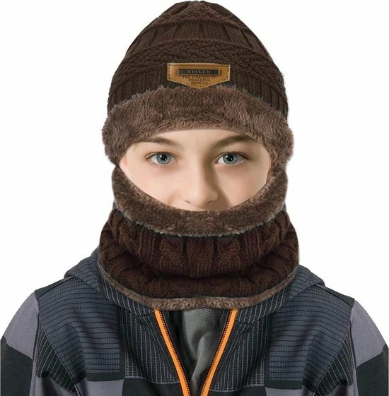 Deze trendy gebreide/gehaakte beanie met colsjaal set houdt je lekker warm bij het skaten, skiën of bij alle andere activiteiten buiten de deur. Deze beanie rekt mee en zit dus altijd goed. Een trendy accessoire waar je mee gezien mag worden. De beanie en colsjaal hebben een heerlijke fleece voering voor maximaal comfort en warmte.