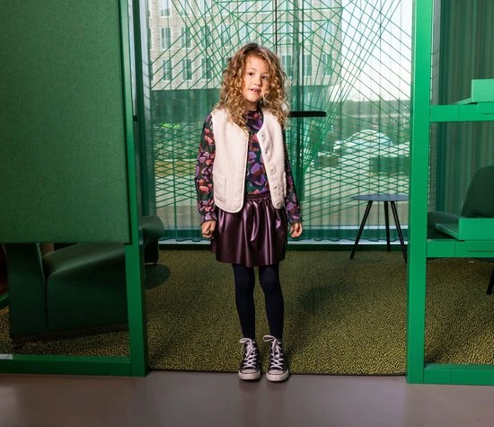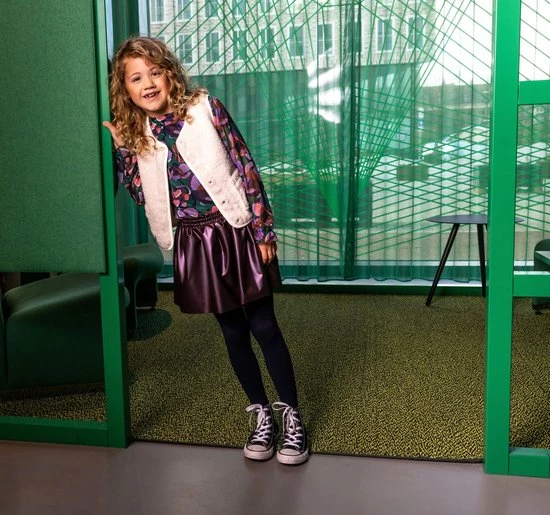 Be bright, be amazing. Dit mega leuke jurkje heeft een mooie top in de poppifield print en toffe leather look rok. Ga jij deze rocken dit najaar?