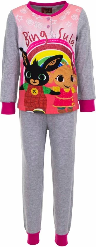 Bing Bunny Bing Pyjama Bing En Sula Met Glitterprint Licht Grijs 98 (3A)