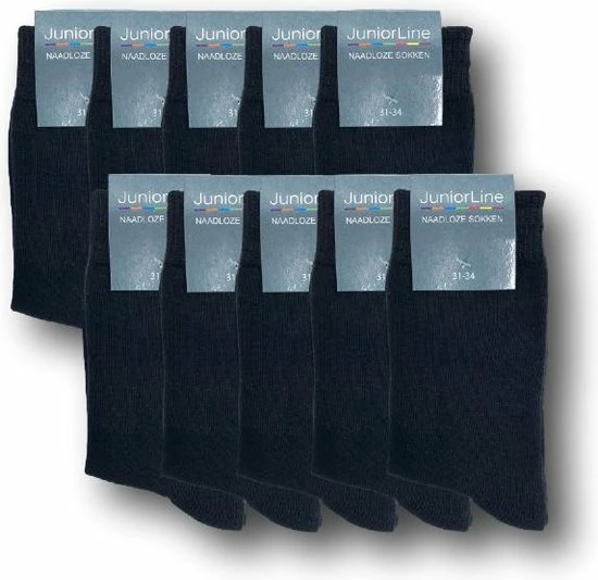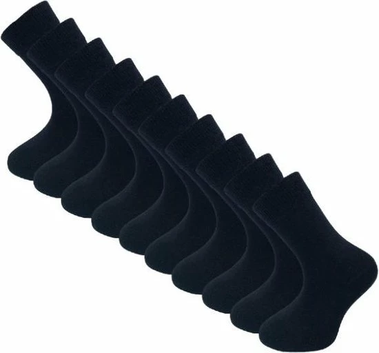 Set van 10 paar kindersokken in de kleur zwart, geschikt voor zowel jongens als meisjes. Deze basic sokken zijn ideaal voor dagelijks gebruik. De kindersokken zijn voorzien van een handige maataanduiding onderop. Verschillende maten kindersokken zijn hierdoor na het wassen eenvoudig van elkaar te onderscheiden. De kindersokken zijn gemaakt van een comfortabele katoenmix en zijn hierdoor zacht, ademend en anti-transpirerend. Dankzij de handgekettelde afwerking zijn deze kindersokken naadloos, de sokken hebben geen voelbare teennaad bovenop de tenen. De set van 10 paar basic kindersokken is verkrijgbaar in diverse maten en kleuren.