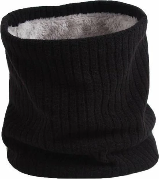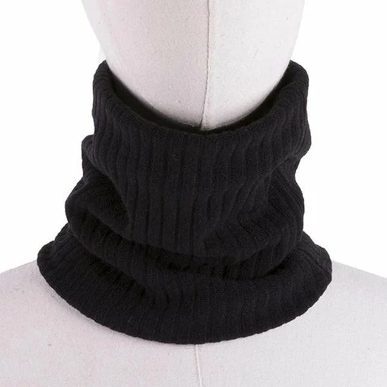 Deze dunne colsjaal heeft een gestreept rib patroon en zachte binnenvoering van teddy. De hoogte is 21 cm, gemaakt van zacht acryl & polyester.