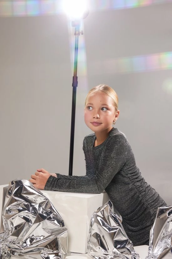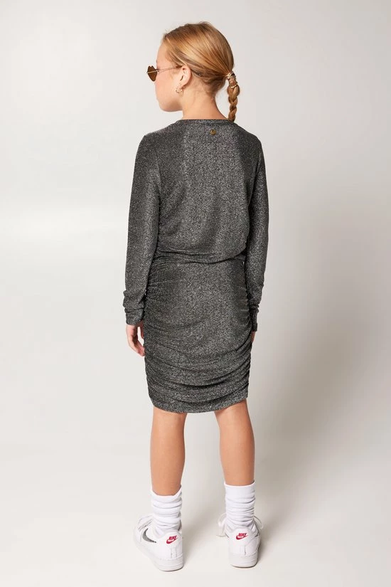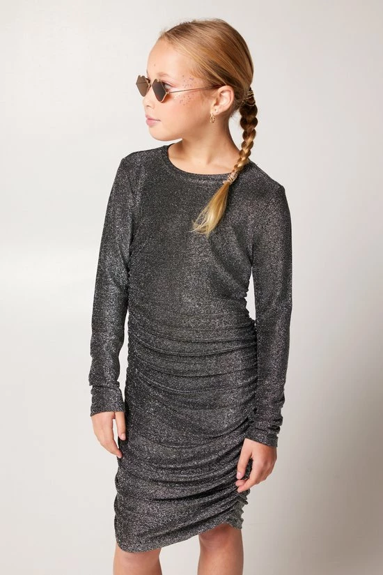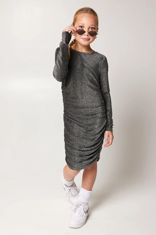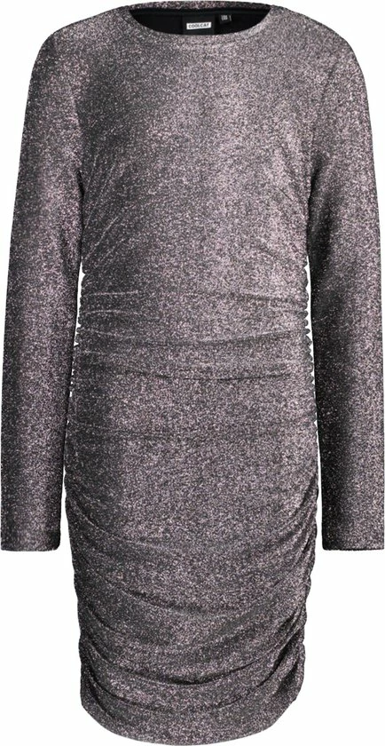 CoolCat meisjes jurk. De Djuna is een jurk met een aansluitende fit en heeft lange mouwen. De jurk heeft glitters en aan de zijkanten een rimpel effect, dit maakt het wat speelser en zorgt voor de perfecte look voor de feestdagen!