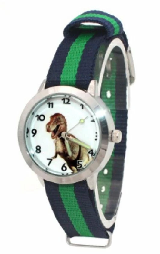 Alle stoere kinderdromen komen uit met dit sportieve dinosaurus kinderhorloge met nylon band.