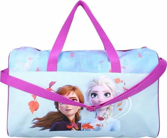 Deze blauwe sporttas van Frozen II is ruim genoeg voor alle sportspullen die mee moeten: of je kindje nu op hockey, turnen, judo, gym of voetballen zit. De tas heeft een groot hoofdvak met rits die over de hele lengte open kan, zodat de spullen in de sporttas makkelijk te pakken zijn.
