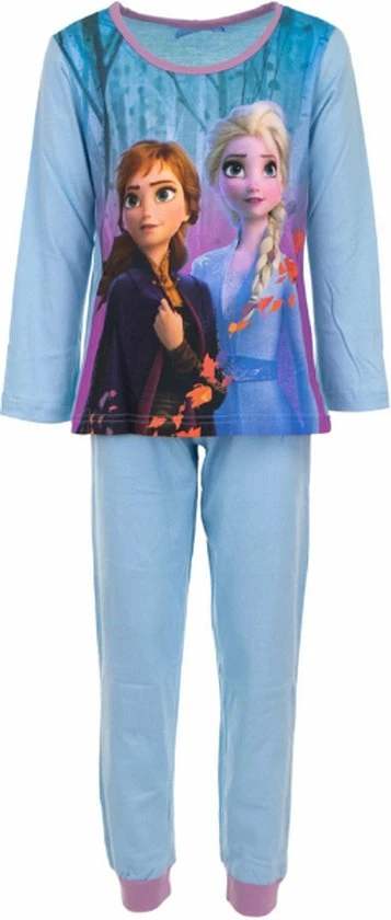 Prachtige Frozen kinderpyjama met afbeelding van Anna en Elsa. De pyjama bestaat uit een blauw shirt met lange mouwen en een broek ook in een blauwe kleur. Op het shirt staat een afbeelding van Anna en Elsa. De pyjama is gemaakt van 100% katoen. Een pyjama van katoen houdt je warm maar zorgt er ook voor dat je niet gaat zweten. Hierdoor is deze pyjama geschikt voor winter en zomer. Deze Frozen kinderpyjama is een ideale basic om lekker in weg te dromen. De pyjama is verkrijgbaar in diverse maten.