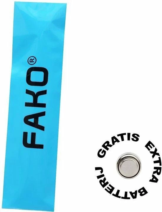 Dit horloge wordt geleverd met een verse batterij en verpakt in een Fako® folie verpakking. Als service wordt het horloge op de juiste tijd gezet en wordt er een gratis reserve batterij meegeleverd.