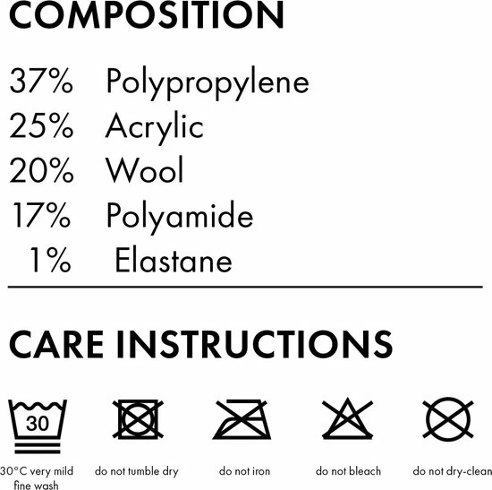 - deze kindersokken kunnen gewassen worden op 30°C op het wol programma