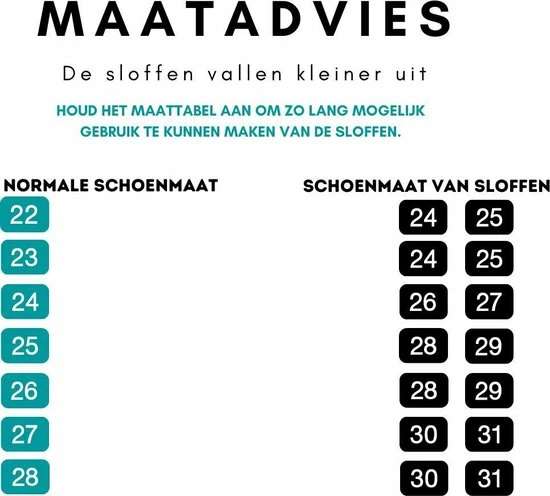 Normale maat kind 25/26,5: kies sloffen maat 28/29