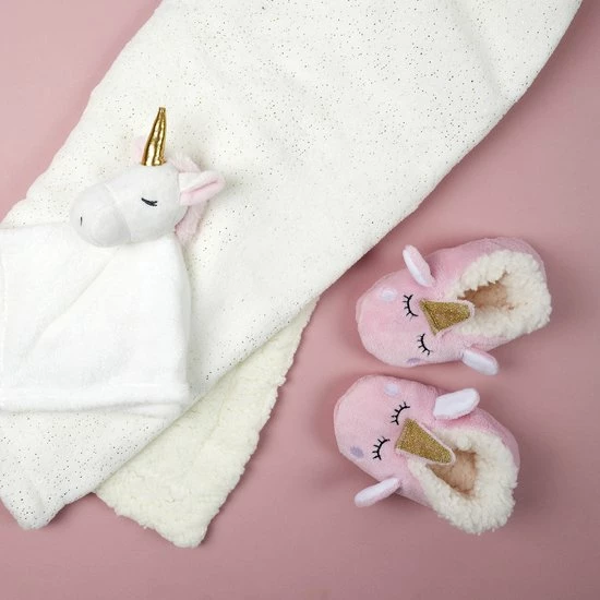Bestel 1 a 2 maten groter! Wat is er nou fijner dan een lekker dagje binnen, met de openhaard aan, een kopje thee met de kleine en lekkere dikke sloffen aan? Deze sloffen hebben we in de maten 24 t/m 31. Het is een heerlijke zachte stof, waardoor de voeten lekker warm worden!
