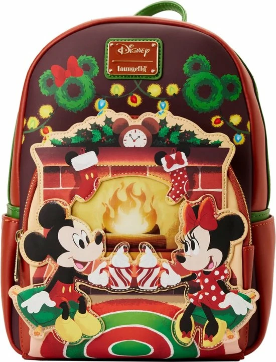 Schenk een kop warme chocolademelk in en ga samen met Mickey Mouse en Minnie Mouse bij het vuur zitten. Vier de warmte van het seizoen met deze Loungefly Disney Mickey Mouse en Minnie Mouse Vuurplaats met Cacao Mini Rugzak. Lenticulaire details van de open haard onthullen een warm en knapperig vuur dat perfect is voor Mickey en Minnie Mouse, die hun met slagroom gevulde warme cacaokopjes in een toast heffen. Hulst versiert de schoorsteenmantel en kousen wachten op de komst van de Kerstman. Applique details brengen de open haard en de personages tot leven – en er is een ritsvak bij de open haard voor het opbergen van extra vakantiebenodigdheden. Op de achterkant heeft Pluto een verlanglijstje voor de Kerstman. Het is het perfecte accessoire om mee te nemen naar feestelijke gelegenheden – of om de vrolijke en heldere sfeer van het seizoen over te brengen op alledaagse uitstapjes.