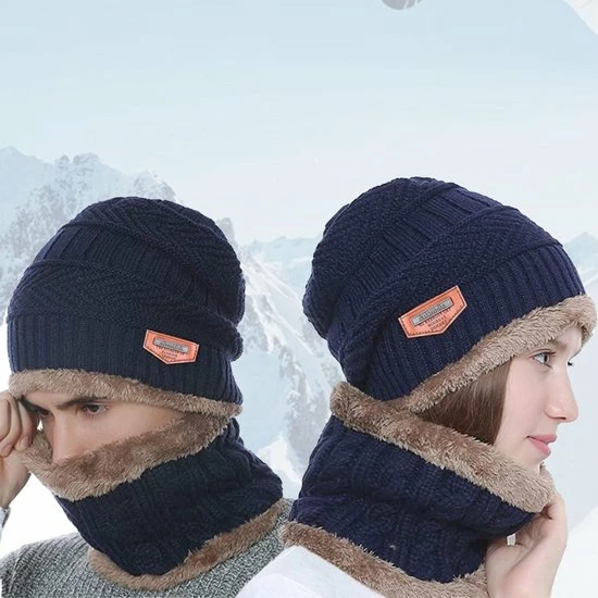 Fleece voering en acryl breisel:Warme gebreide muts en sjaal met gezellige en dikke fleecevoering, gemaakt van dik en gezellig acryl breisel, super comfortabel en warm.