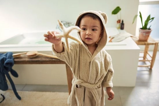 Het badjasje gebruik je al bij de leeftijd van 1 jaar en past tot ongeveer een leeftijd van 2 jaar. Dit is ook afhankelijk van hoe groot jouw kindje is.