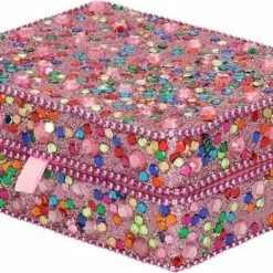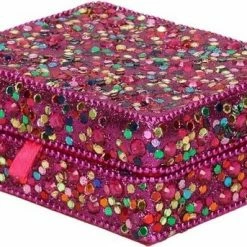 Merkloos Roze Roze Sieradenkistje Met Glitters 8 X 10 Cm – Juwelenkistje/sieradendoosje Met Spiegel