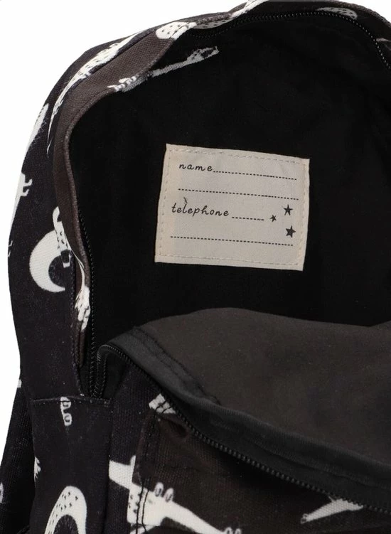 Als dit geen stoere rugtas is? Die wil je kindje vast overal mee naartoe nemen. Deze zwarte rugzak uit de Stories collectie is bedrukt me een leuke krokodillen print. De rugzak heeft een handig voorvak met een rits met ruimte voor de kleinere spulletjes die mee moeten. Het grote hoofdvak heeft een handige dubbele rits en biedt ruimte voor bijvoorbeeld een broodtrommel of extra setje kleding. Handig als je kindje de rugtas mee naar school neemt. De rugzak is te dragen aan de lus aan de bovenkant of op de rug met de verstelbare schouderbanden.