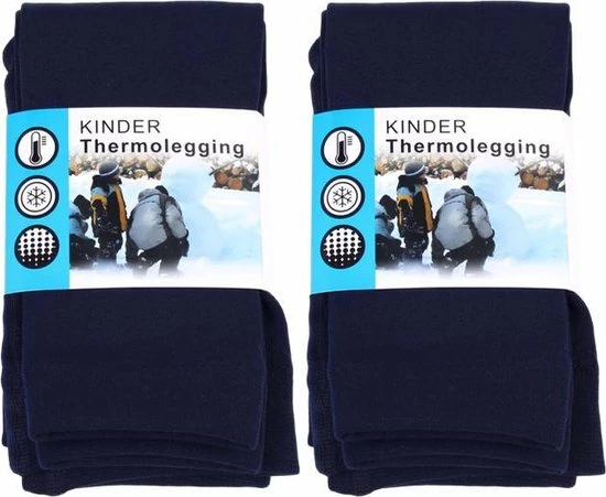 Set van 2 kinder thermoleggings in de kleur marine. Deze thermo leggings zijn gemaakt van een warme, zachte en comfortabele stof. De kinderleggings zijn ook sterk, elastisch en drogen snel. Deze set thermoleggings is de ideale basic voor tijdens koude dagen. Deze voordelige set van 2 kinder thermo leggings is verkrijgbaar in de maten 110-116, 122-128 en 134-140.