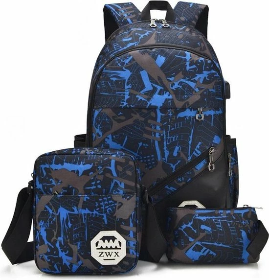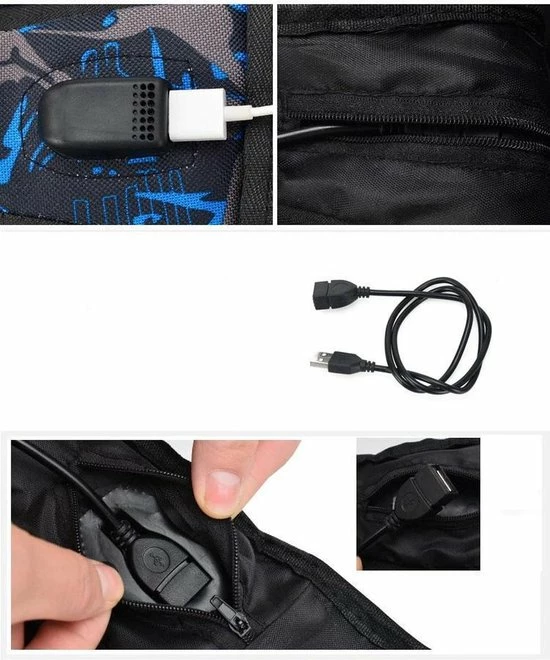 Deze tas is verkrijgbaar in maar liefst 4 stoere kleuren. De tassenset is geschikt voor zowel meiden als jongens. Daarnaast heeft de tas een handige USB poort waardoor je je telefoon kunt opladen met een powerbank (niet meegeleverd).