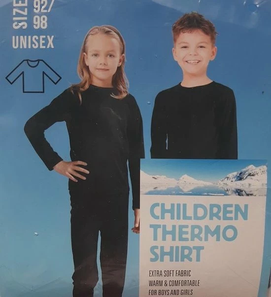 Merkloos Kinder Thermo Shirt Zwart – Lange Mouw – Maat 92/98 – Thermoshirt Unisex Extra Warm En Zacht