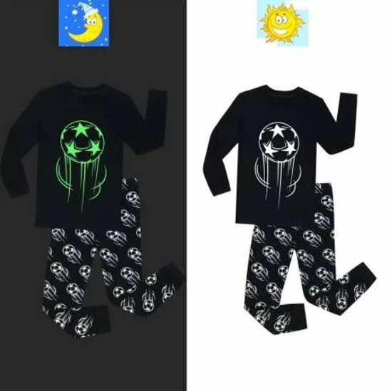 Merkloos Pyjama Voetbal Glow In The Dark – Kinderpyjama – Pyjama Glow In The Dark – Slapen – Kinderen – Pyjama Voor Jongens – Pyjama Voor Meisjes – Pyjama Voor Kinderen – Voetbal Pyjama