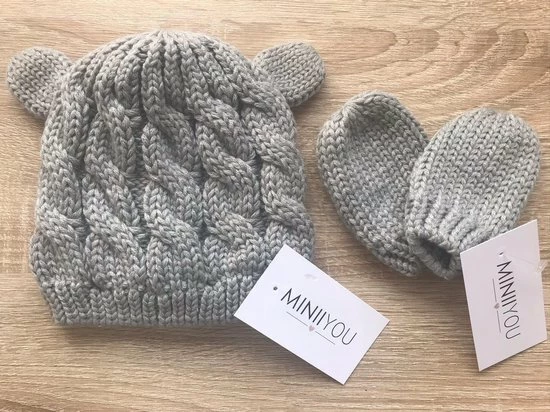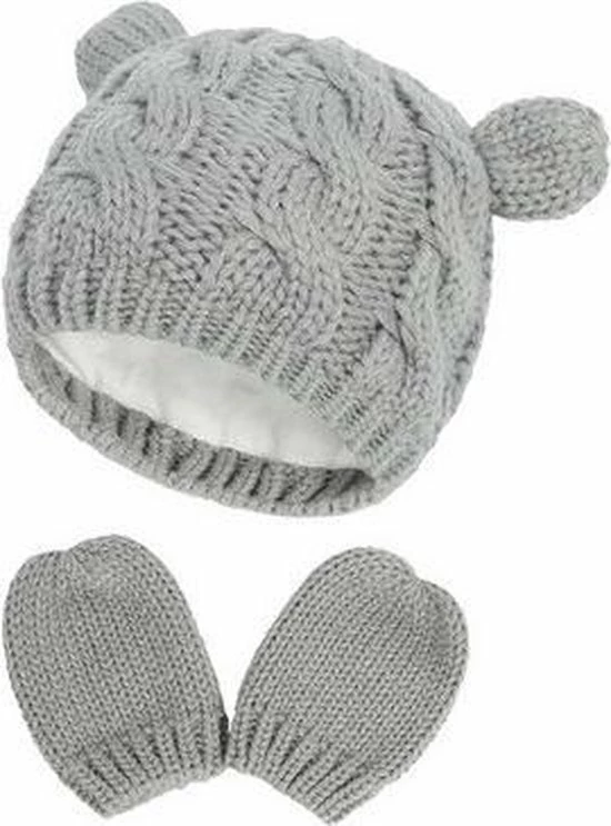 Dit onwijs schattig setje van muts en wantjes houden je baby fijn warm tijdens de koude winterdagen. De muts is voorzien van een katoenen voering.