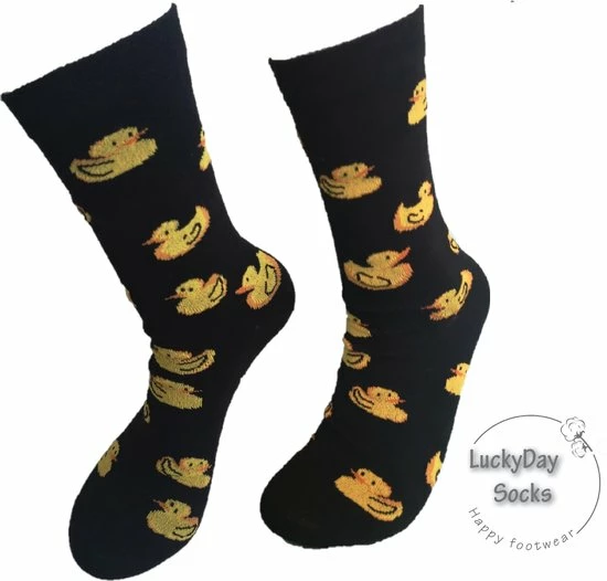 Merkloos Verjaardag Cadeautje Voor Hem – Eend Sokken – Leuke Sokken – Vrolijke Sokken – Luckyday Socks – Sokken Met Tekst – Aparte Sokken – Socks Waar Je Happy Van Wordt – Maat 42-47