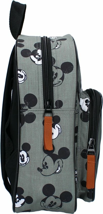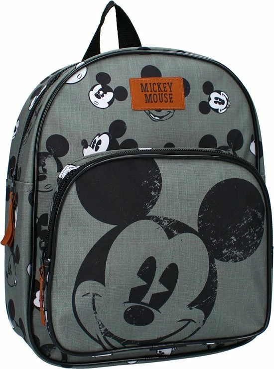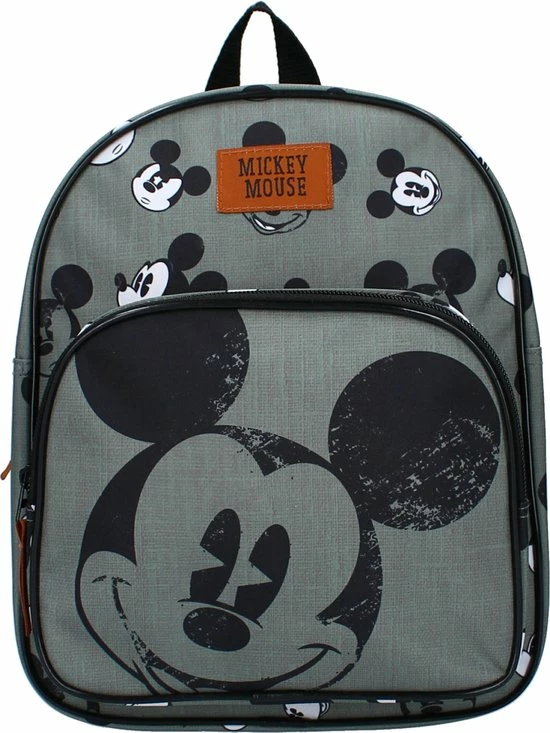 Dit schattige rugzakje van is een perfect item voor kleine kinderen die op zoek zijn naar een stijlvol item met zijn of haar favoriete Disney figuur. De rugzak is donkergroen van kleur en is bedrukt met het hoofd van Mickey Mouse. Het ruime voorvak is groot genoeg voor logeer of schoolspullen. Daarnaast past in het ruime voorvak de nodige kleine spullen. De vakken kunnen worden geopend door middel van de ritssluitingen. De verstelbare schouderbanden zijn zwart van kleur.