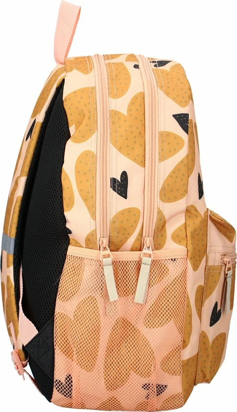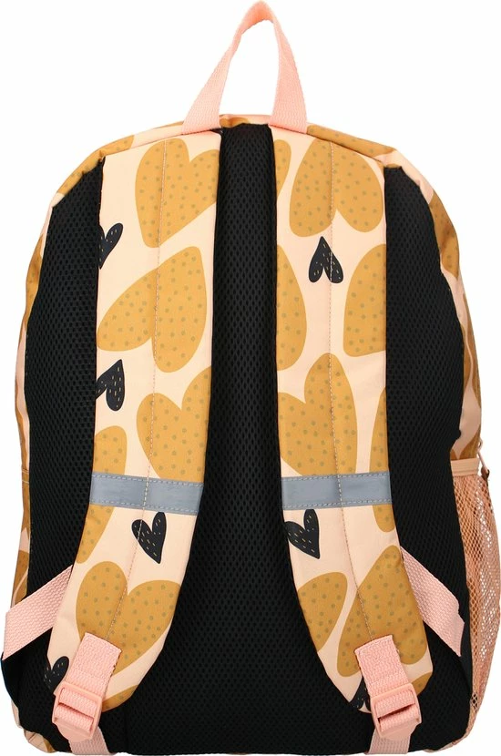 Deze hippe rugzak met hartjesprint is een echte musthave voor elke fashionista! Deze Milky Kiss tas uit de Just For Me collectie is geel met leuke zwarte hartjes. De rugzak heeft een ruim afsluitbaar hoofdvak waarin je al je spullen kwijt kan. De voorzijde van de tas is voorzien van een handig voorvakje met ritssluiting. Neem de tas mee naar school of een dagje weg. Verder kan de rugzak makkelijk opgehangen worden met de ophanglus. De comfortabele schouderbanden zijn in lengte verstelbaar, dus deze rugzak kan een lange tijd gebruikt worden.
