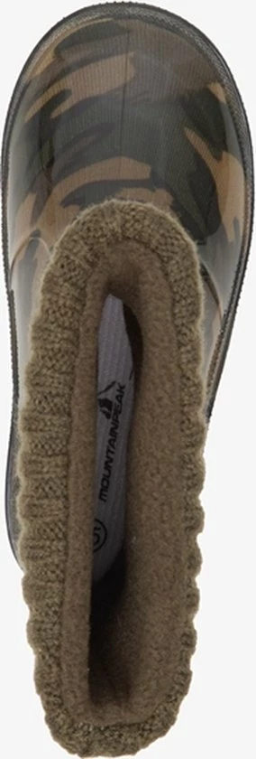 Stijlvol in de plassen stampen met deze regenlaarsjes met camouflage print uit de Mountain Peak collectie. Gemaakt van synthetisch PVC, wat de laarzen flexibel maakt. De regenlaarzen hebben een zachte voering en omslag van gebreide stof. Het comfortabele voetbed is gemaakt van textiel en is niet uitneembaar. Voorzien van een stevige, schokdempende profielzool van rubber die grip en optimaal comfort biedt. De laarsjes hebben trendy camouflage print op het bovenwerk en lichtjes in de zool. Ontworpen voor een all-round bescherming in verschillende (weers)omstandigheden en condities, van wandelen in het bos tot stampen in de plassen of door het zand. Verkrijgbaar in de maten 23 t/m 33.