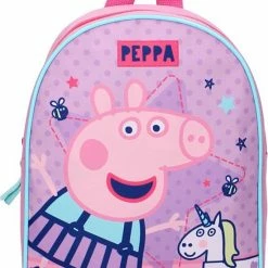 Ga vrolijk op pad met deze roze Peppa Pig-rugzak! De rugzak is gemaakt van polyester. Op de tas staat Peppa Pig samen met een eenhoorn. De tas heeft één ruim hoofdvak en is afsluitbaar met een rits.