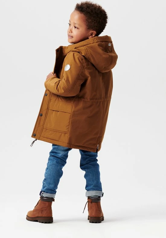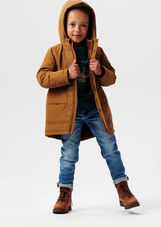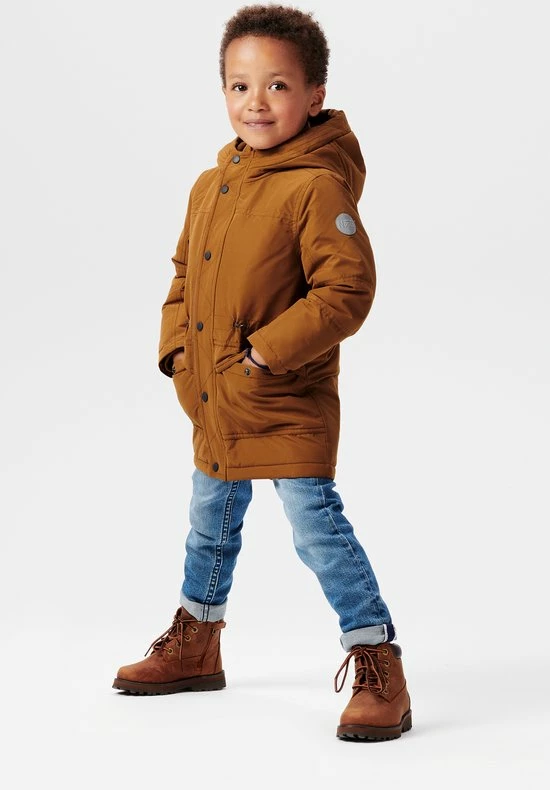 Stoere Noppies Kids jas die tegen een (wind)stootje kan! Jas Nes heeft een met fleece gevoerde capuchon voor extra zachtheid en warmte. Ook heeft de jas gevoerde zakjes en een ritsstopper die de huid van je kindje beschermt. De geribde mouwboorden houden de wind buiten en de armen van je kindje lekker warm. Op de mouw zit een reflecterende batch. Met het striklint in de taille zorg je voor extra shape. De jas is waterafstotend en windproof.