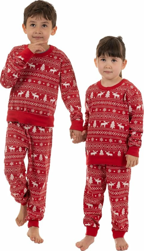 Pastunette Familie Kerst Meisjes/Jongens Pyjamaset – Rood – Maat 152