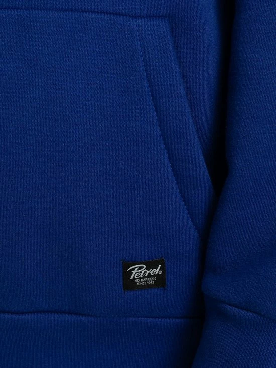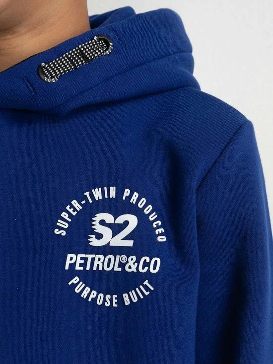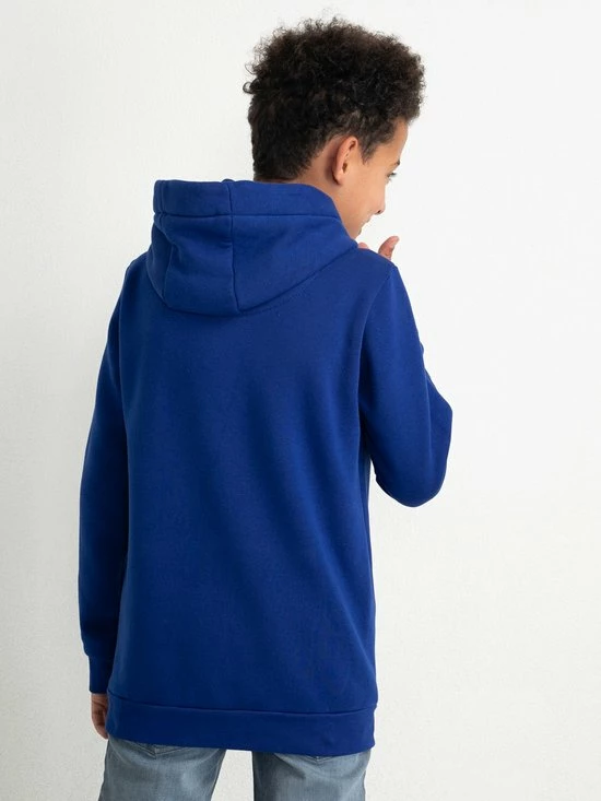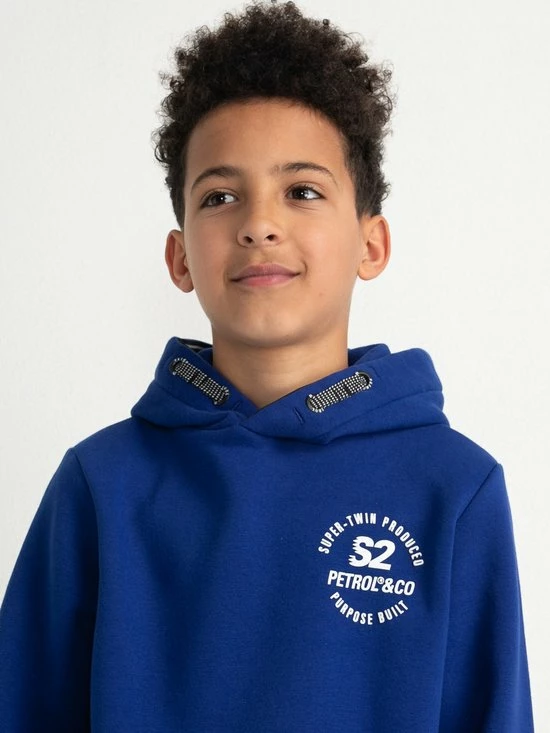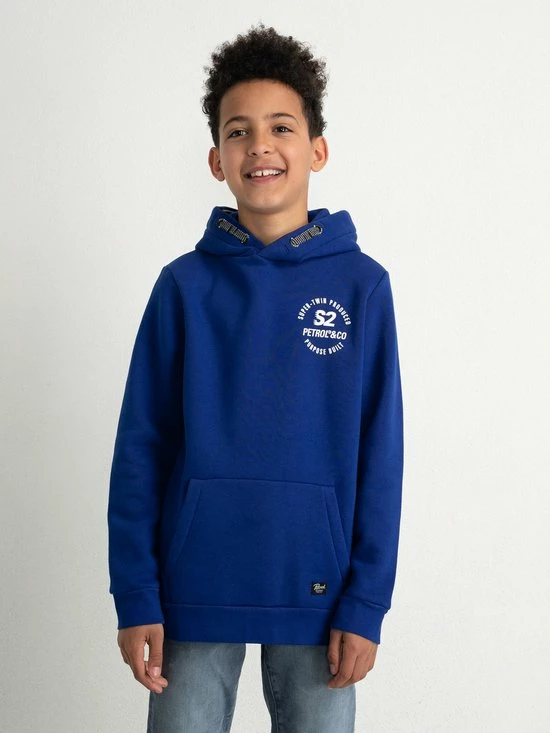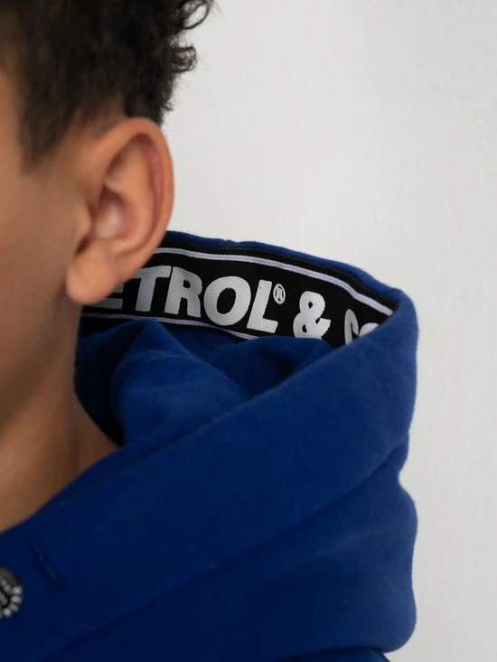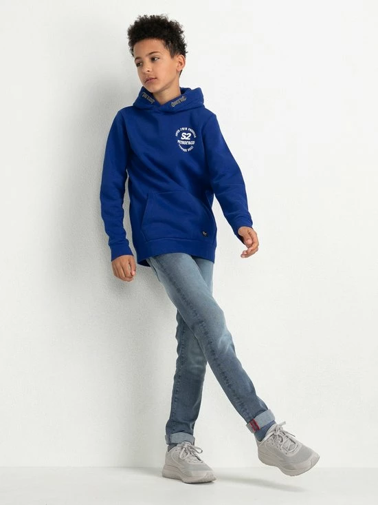 Stoere, duurzamer geproduceerde jongens hoodie in streetstyle look. Op de borst bevindt zich een cirkelvormig logo artwork. De capuchon van de hoodie heeft geintegreerde trekkoorden en een bies met letter print.