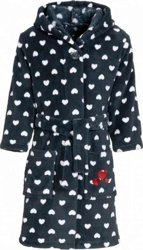 Het is heerlijk om je kindje in deze heerlijke fluffy blauwe badjas versierd met witte hartjes voor meisjes van Playshoes te wikkelen na een douche of bad. De ochtendjas heeft een grote capuchon die jouw kind lekker over zich heen kan trekken om ook het hoofd op te warmen. Jouw kind kan haar handen in de fijne grote zakken van de ochtendjas steken om ze op te warmen en daar ook haar spulletjes in bewaren. Met het ceintuur is de badjas aan te trekken, maar ook de knoop aan de bovenkant bij de nek zorgt ervoor dat de hals van jouw kindje niet ontbloot en koud is.
