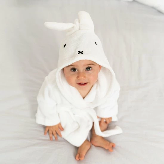 Deze Nijntje unisex badjas is gemaakt van een comfortabele zachte kwaliteit. De badjas is wit van kleur en heeft een capuchon. Op de capuchon zit een Nijntje applicatie en hij heeft mooie lange Nijntje oren.