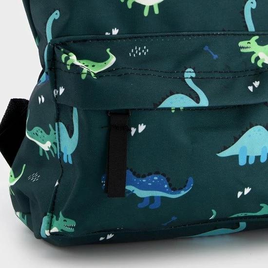 Klaar voor het nieuwe schooljaar met deze leuke dino rugzak! De kleine rugzak heeft een stevige draaglus een twee verstelbare, gewatteerde schouderbanden voor een goede pasvorm. Voorzien van een voor- en hoofdvak met ritssluiting. De rugzak is geschikt voor kleine kindjes en biedt genoeg ruimte voor een drinkflesje, lunchbox en eventueel een setje extra kleding. De tas heeft een versteviging in de rug en een all over dinosaurus print. Gemaakt van 100% polyester. De afmetingen van de rugzak zijn 31 x 22 x 9 cm en heeft een inhoud van 6 liter.