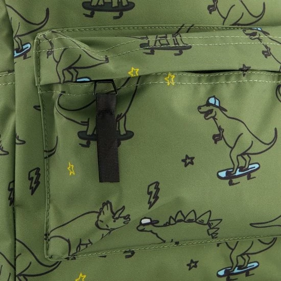 Neem al je schoolspullen gemakkelijk mee in deze groene kids rugzak met stoere dino print. Voorzien van een stevige ophanglus en verstelbare, gewatteerde schouderbanden voor een optimale pasvorm en draagcomfort. De rugzak heeft een voor- en hoofdvak met ritssluitng en all over dino print. Gemaakt van 100% polyester, met een totale inhoud van 9 liter. Afmetingen: hoogte 33 X breedte 23 X diepte 12 cm.