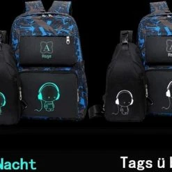 Rugzak Voor Jongens Met Kleine Tasje – Zwart Met Print – Voor Lapotop – Middelbare School Schooltas