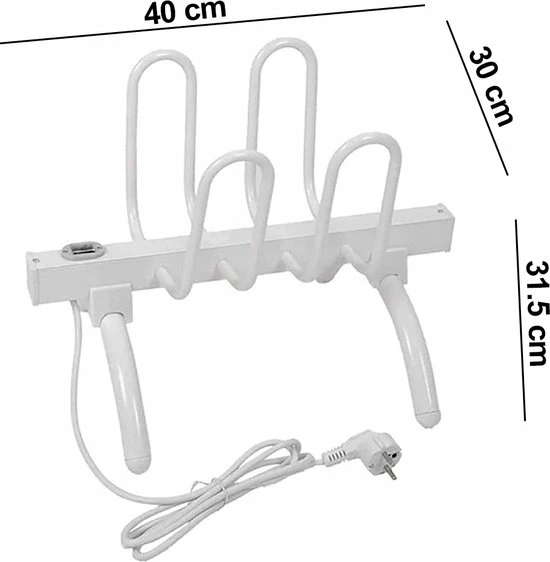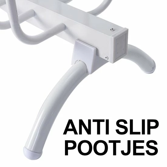 Dankzij de antislip pootjes glijdt de schoenendroger niet weg. Zo kan deze overal in de kamer staan zonder om te vallen of te verschuiven. Met een snoerlengte van 1.5 meter kun je de Shoeclean schoendroger ook veilig neerzetten en uit de buurt van brandbare dingen.