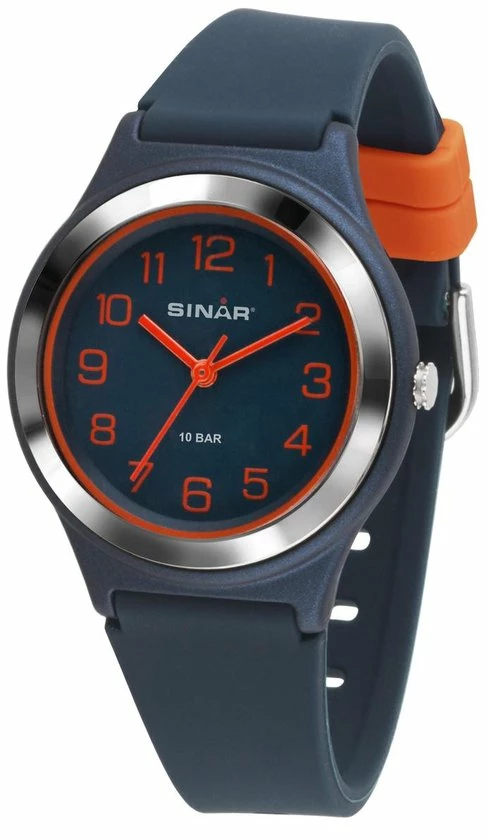 Maar zelden is een horloge zo trendy, fijn om te dragen en tegelijkertijd robuust en aantrekkelijk als dit model van het Duitse merk SINAR. De fijne kleurencombinatie van donkerblauw en oranje in combinatie met de matte stalen rand rondom de wijzerplaat maken dit horloge tot een hip accessoire. De vlakke horlogekast en het zachte, huidvriendelijke siliconen bandje zorgen ervoor dat het horloge comfortabel is om te dragen.