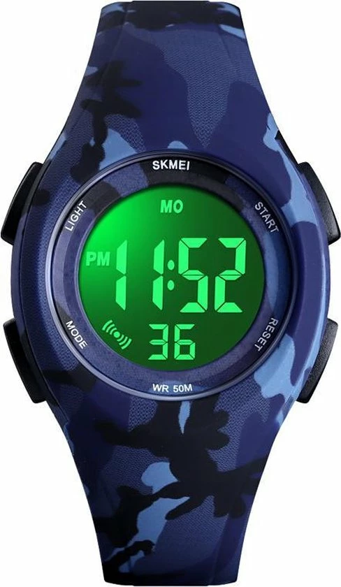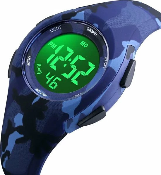 Dit complete kinderhorloge heeft een groot aantal functies. Zo heeft het onder andere alarm, datumaanduiding en een chronograaf. EL backlight zorgt er voor dat dit horloge ook in het donker goed te lezen is. Door het lichte materiaal zit het horloge comfortabel om de pols en omdat het 5 ATM waterdicht is, kan je er gerust mee onder de douche!