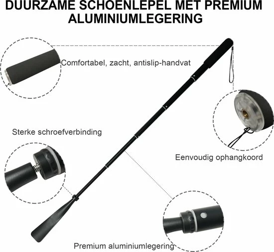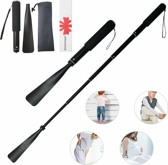 Bent u op bezoek naar een betrouwbare en kwalitatief schoenlepel? Dan is onze orthopedische uitschuifbare schoenlepel precies wat u nodig hebt. Deze schoenlepel is in 4 maten verstelbaar, om de gewenste positie te bepalen, zonder dat u hoeft te bukken en met gemak uw schoenen kunt aantrekken. Er is slim over het design na gedacht. Schoenlepel kan uit elkaar gehaald worden en met het gratis inbegrepen opbergzakje past het makkelijk in uw kleinste tasje. Deze extra Schoenlepel is uitschuifbaar in lengte tussen 38cm-95cm. Onze schoenlepel is gemaakt van een duurzaam aluminium, dat maakt het niet alleen licht in gewicht, maar ook zeer sterk in kwaliteit en gaat erg lang mee. De randen zijn smooth en glad afgewerkt en het handvat is gemaakt van een duurzaam zachte materiaal met een draagkoord. Het voorkomt pijn in handen en maakt het dragen van uw schoenen makkelijk, dat is ideaal voor lange mensen, zwangere vrouwen, ouderen, kinderen, mensen met pijn en/of met moeite om te kunnen bukken. Ons product wordt geleverd in een soort GIFTBOX en is ideaal om ook cadeau te geven.