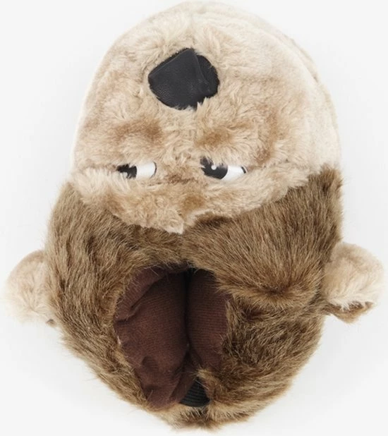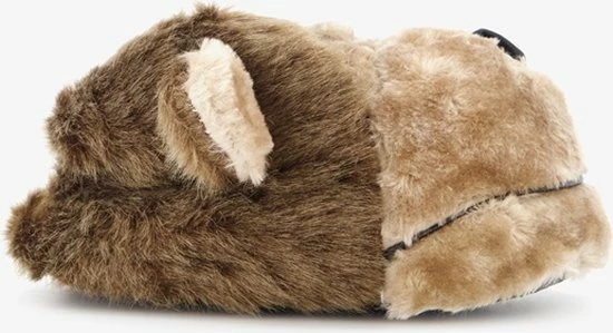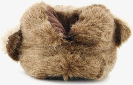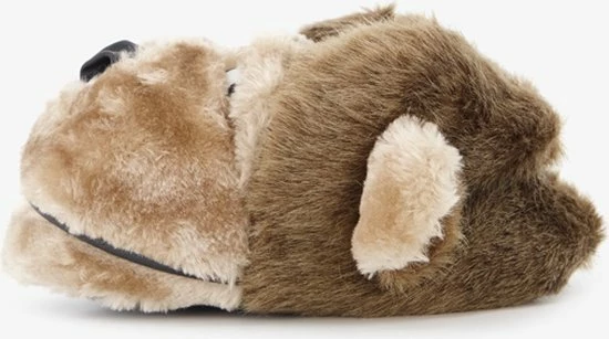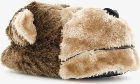 Bruine kinder pantoffels in de vorm van een aap. Gemaakt van textiel.