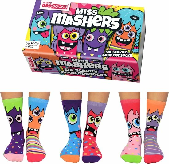 United Oddsocks Miss Mashers Sokken Kinderen 6 Verschillende In Een Doos 30-39 ODDSocks