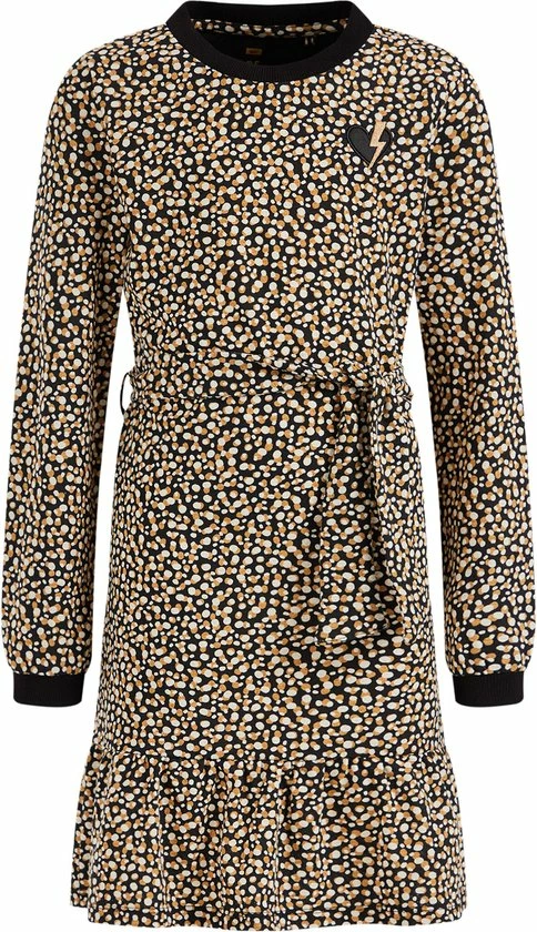 WE Fashion Meisjes Gestructureerde Jurk Met Dessin En Strikceintuur – Maat 122/128