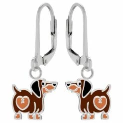 Oorbellen meisje | Zilveren kinderoorbellen | Zilveren oorhangers, bruine teckel