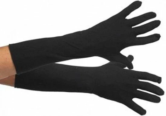 1 paar Piet handschoenen zijn gemaakt van polyester en hebben een lengte van 40 cm