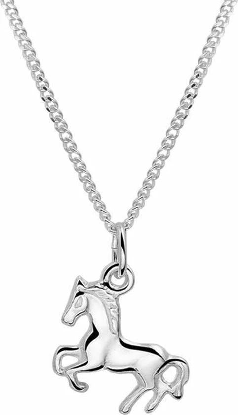 925 Zilveren ketting met een paardje. De lengte van de ketting is 36cm met 4cm extensie en de schakelbreedte is 1.4mm. Voor de kleine paardenmeisjes.