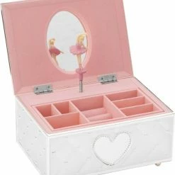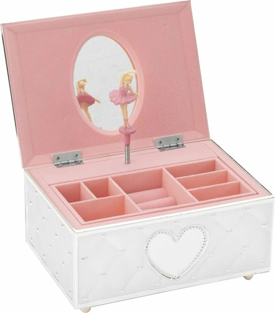 Als de deksel geopend wordt danst er een ballerina op de melodie van Für Elise. De sieradenbox kan gegraveerd worden, wat het een bijzonder (geboorte)geschenk maakt.